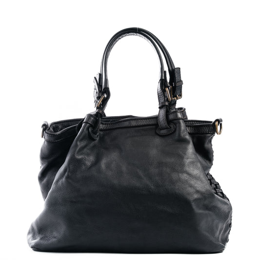 Classic Black 4 Panel Real Italian Leather Weave Tote Bag
