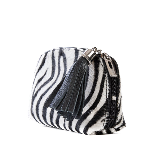 Zebra Cowhide Real Leather Mini Clutch Bag