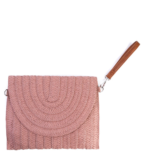 Amilu Pink Fold Over Braided Straw Clutch Bag