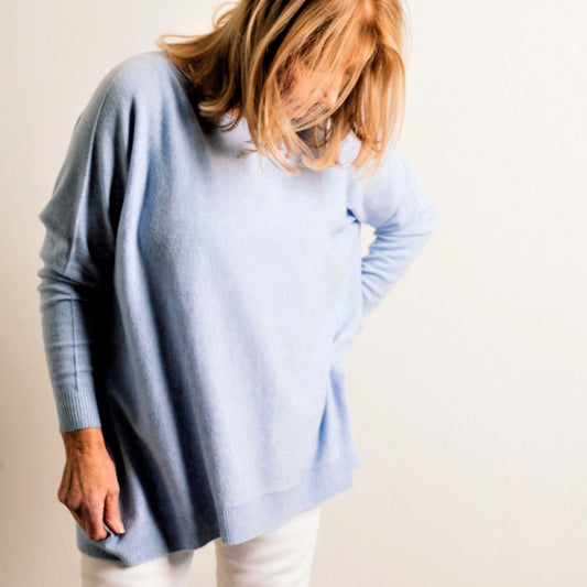 Pale Blue Supersoft Loose Fit Fine Knit Oversize Round Neck Easy Wear Jumper
