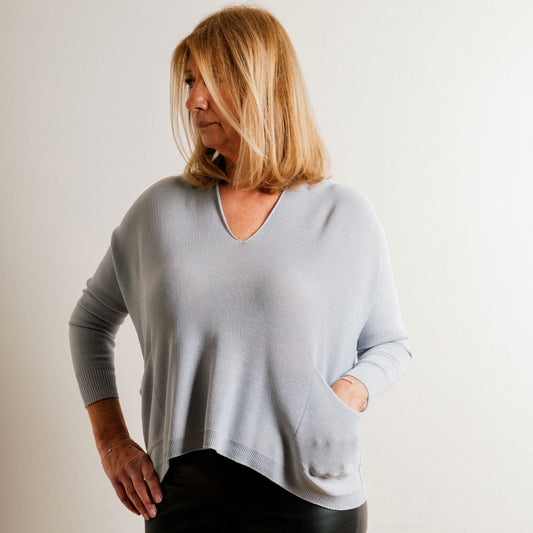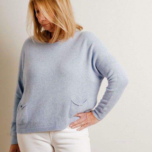 Pale Blue Double Pocket Supersoft Fine Knit Round Neck Easy Wear Jumper