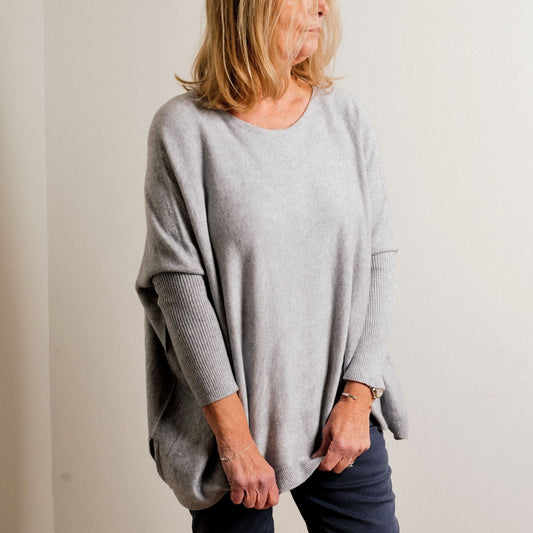 Light Grey Supersoft Tapered Batwing Sleeve Fine Knit Round Neck Easy Wear Jumper