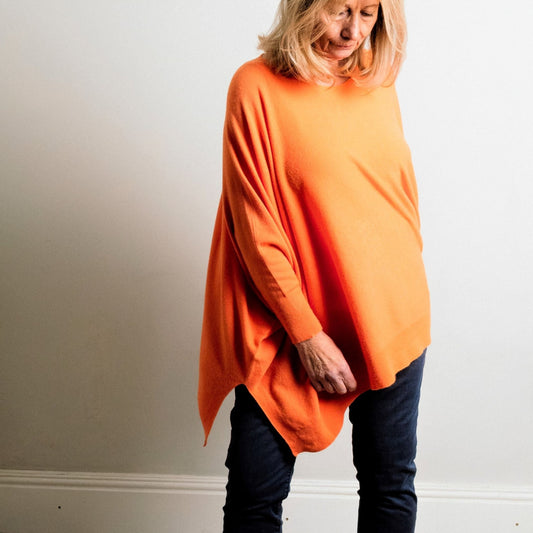 Orange Asymmetric Box Fit Supersoft Fine Knit Jumper With Batwing Sleeve