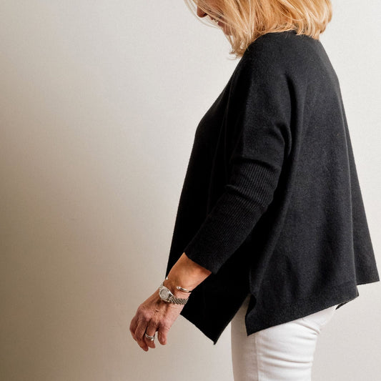 Black Supersoft Tapered Batwing Sleeve Fine Knit Round Neck Easy Wear Jumper