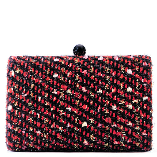 Woven Red and Black Multi Hard Case Box Clutch Bag