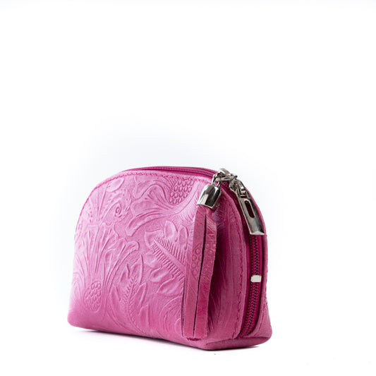 Fuchsia Pink Florens Embossed Real Leather Mini Clutch Pod