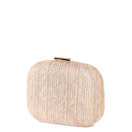 Textured Straw and Gold Shimmer Hardcase Box Clutch