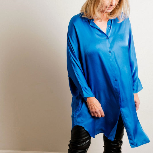 Cobalt Blue Silky Soft Oversize Trapeze Drape Shirt/Shirt Dress