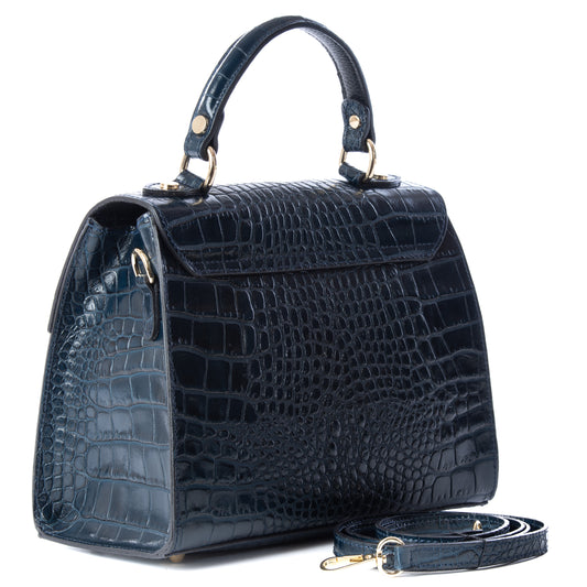 Navy Blue Real Italian Leather Croc Satchel Tote Bag