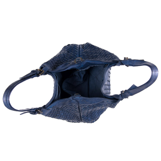 Portobello Classic Navy Real Italian Leather Weave Tote Bag