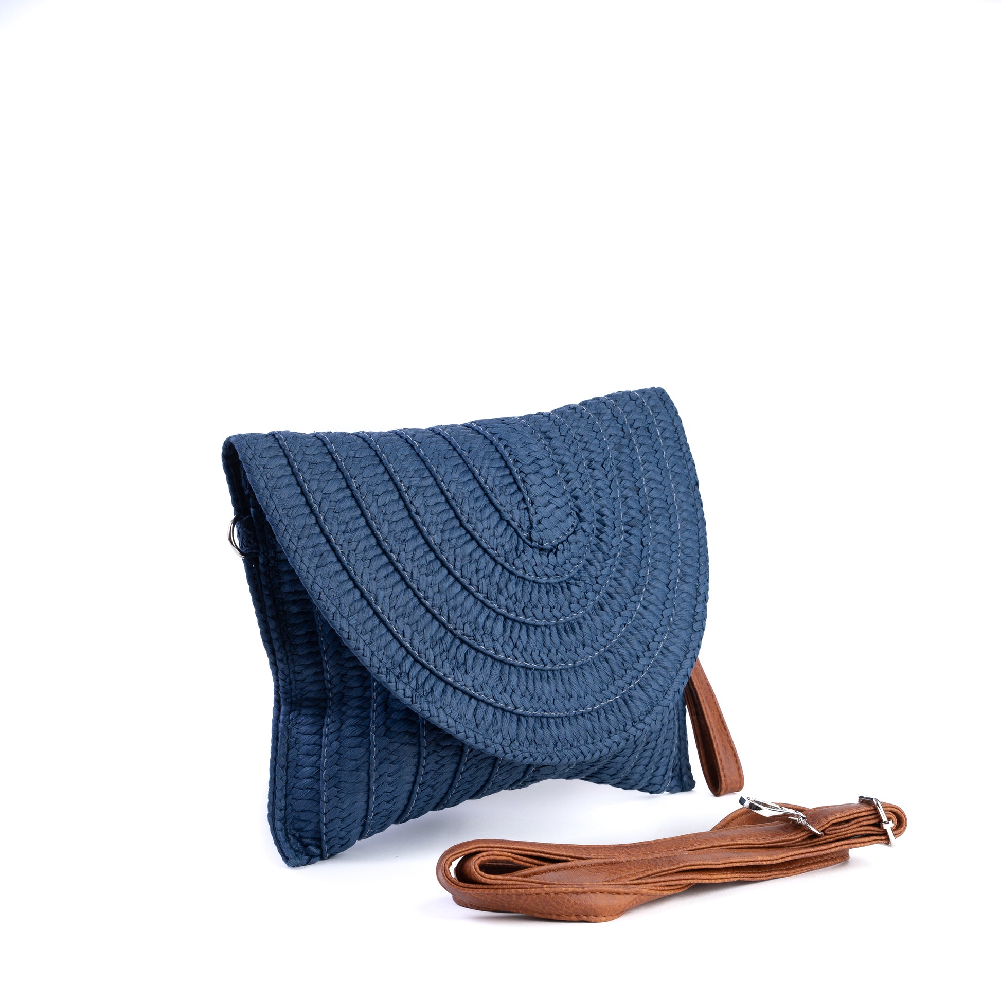 Amilu Navy Blue Fold Over Braided Straw Clutch Bag